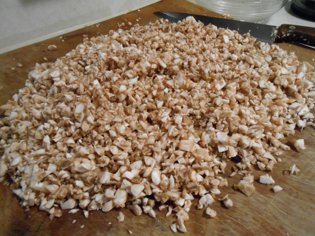For country-style mushroom pates and for those who don’t have a food processor, chopping mushrooms finely will have to be done with a broad, sharp, sturdy knife if you want to make a pate.