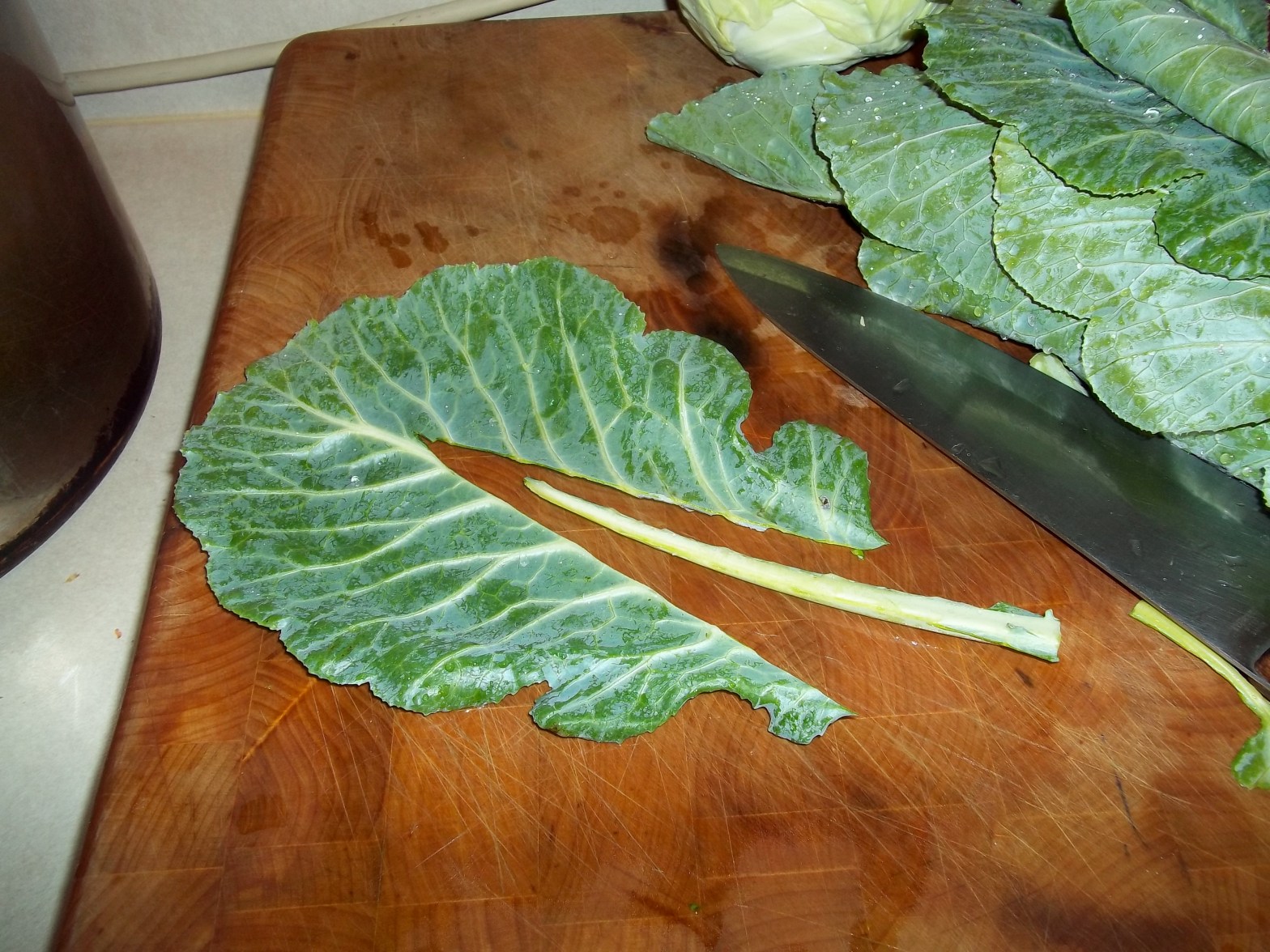 COLLARD GREENS, REMOVING STEMS