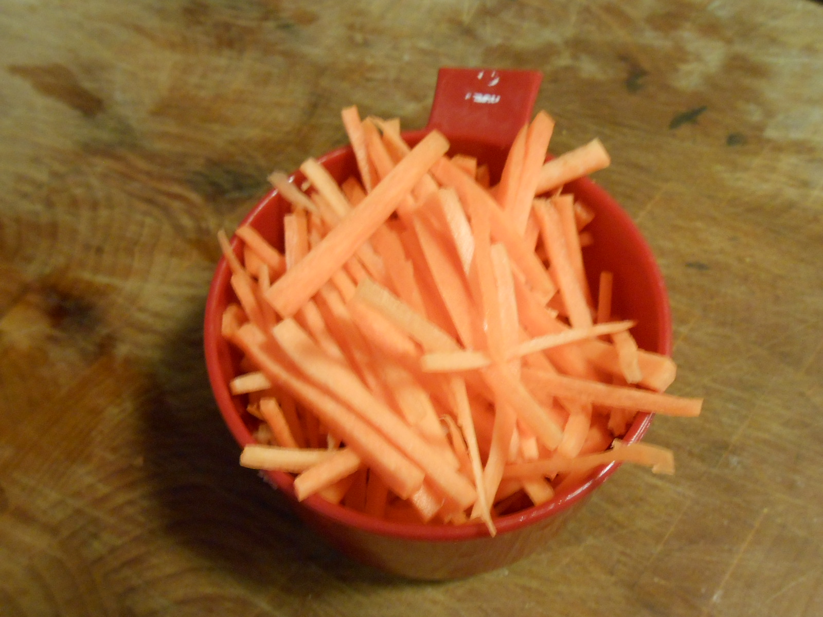 JULIENNE CARROTS. Follow directions for matchstick carrots, only make them larger, either 1/4 or 1/2 inch thick.