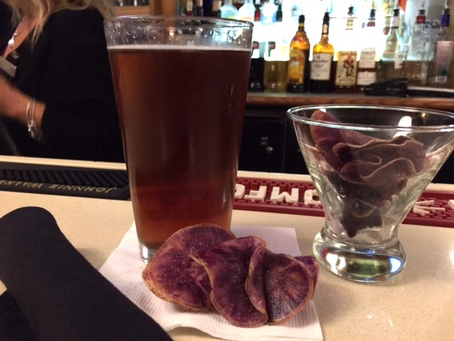 Glory be, yes! She said she read the label on the box and it said vegan. So I’m good. The bar served these very thin baked purple potato slices (as bar snacks) that weren’t crispy, but good. So good (and healthy I thought) that the bartender filled me up twice.