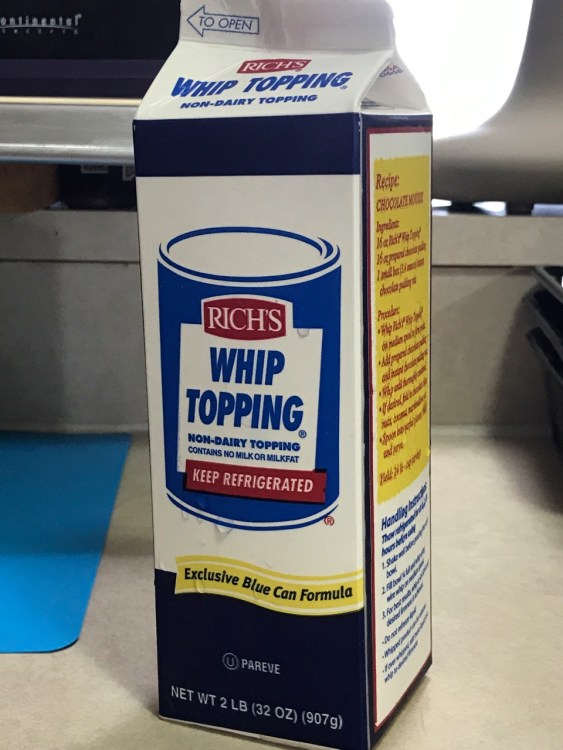 To date, Rich’s is the only company I’m aware of that sells dairy-free soy-based liquid that can be whipped into the equivalent of dairy whipped cream. Check out their website to see where you can purchase it. It’s sold frozen, so look in the frozen foods department of your grocery store.