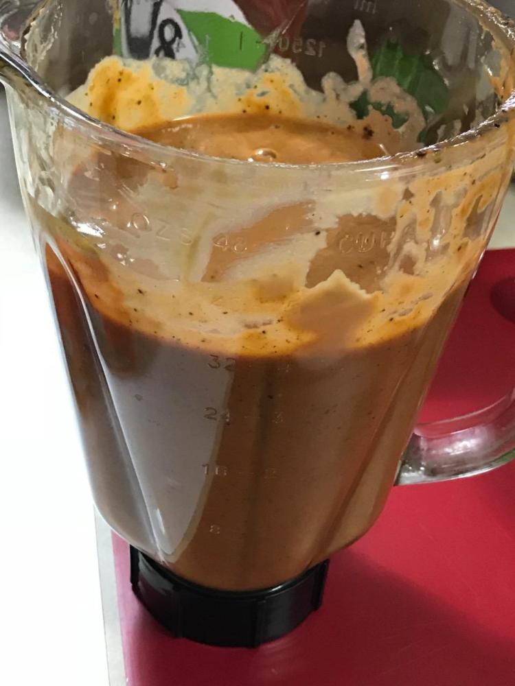 Use as sauce or soup. You can’t really taste the tomato or the beans or the pumpkin and sesame seeds – not distinctly. Even the texture throws you off for a bean soup. Nobody will connect this sauce to beans – unless they are a bean aficionado.