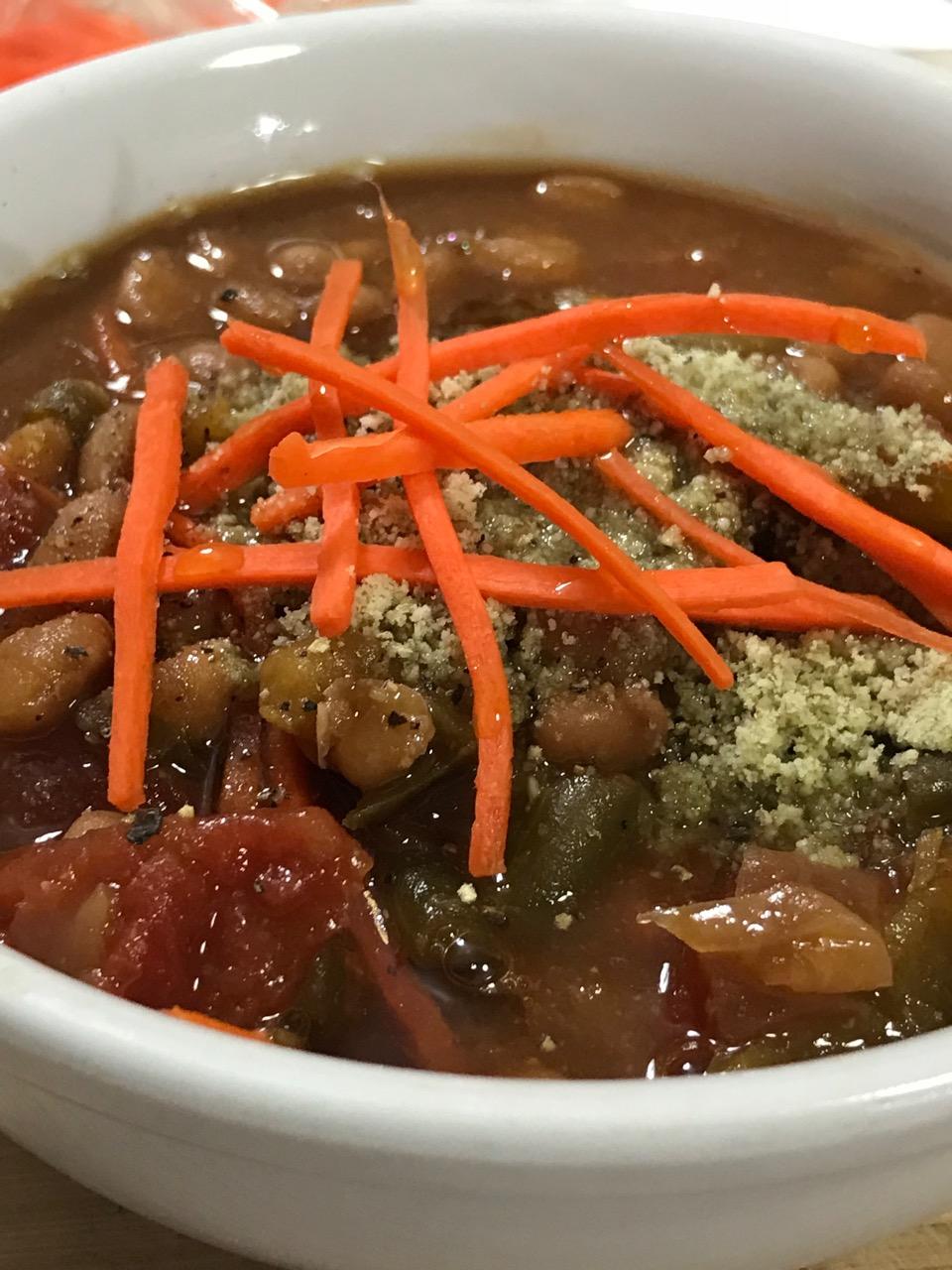 I don’t know what to call this soup. Call it anything you want. Call it Donkey Soup. Donkey Ass Soup. It doesn’t taste like any one ingredient defines it. The customer depending on the name will say they can’t taste the tomato or the beans or the pumpkin and sesame seeds. They’re right, you can’t – not distinctly. Even the texture throws you off for a bean soup. Donkey Ass Soup it is.