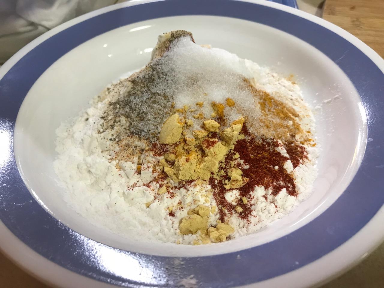When you get back to the tofu, coat both sides again and lay out on wire rack for at least more 30 minutes.