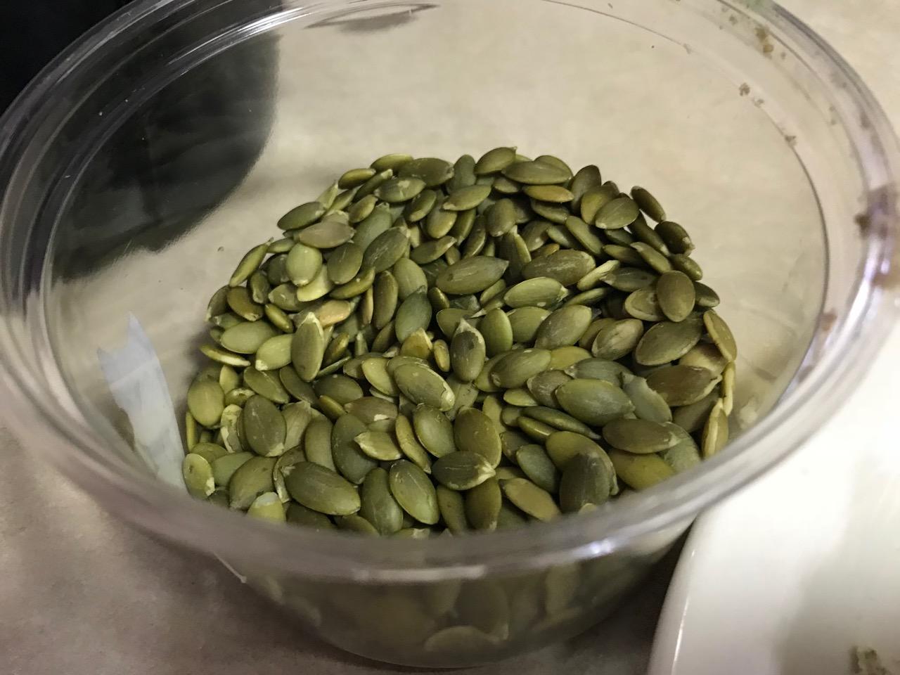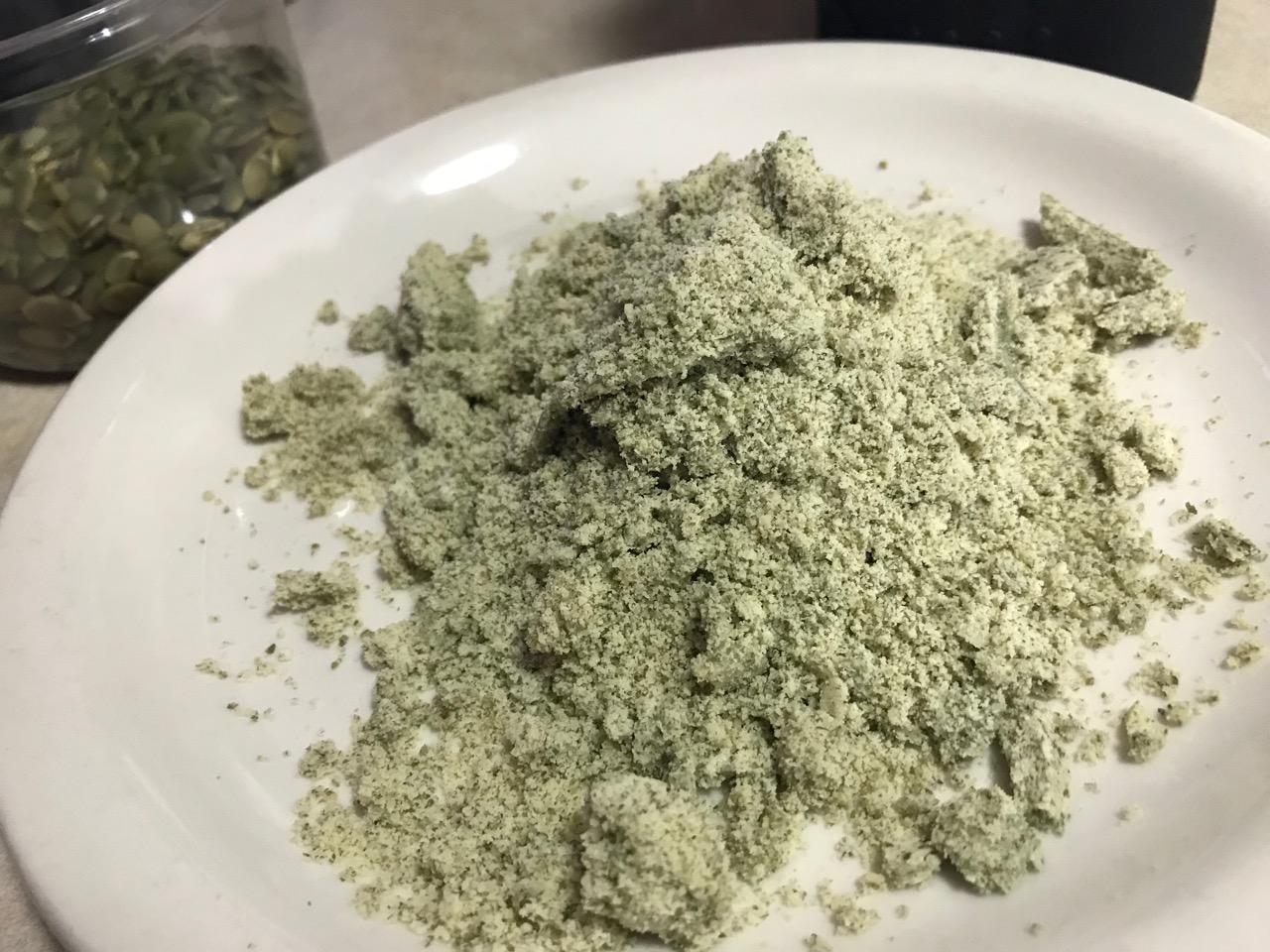 All you need to make Pumpkin Seed Snow are raw, shelled pumpkin seeds and an electric coffee bean grinder.