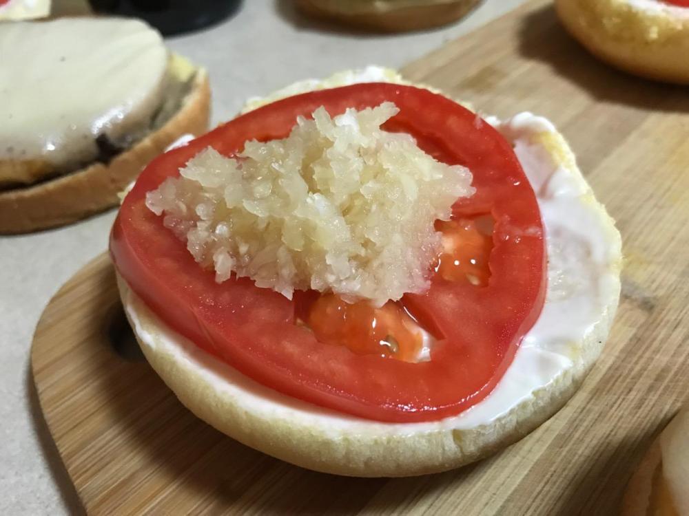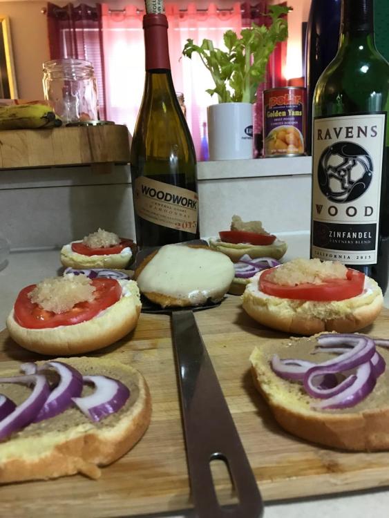 This was our Easter dinner believe it or not. And wow what a burger. BOCA ORIGINAL VEGGIE CHIK’N PATTIES pan-fried, topped with Tofutti Dairy-free cheese and cooked till melted, served with red onion slice and fresh tomato on a lightly toasted potato bun spread with Ball Park Mustard and veg mayo. Top the tomato slice with minced sauerkraut and we were in sauerkraut and veggie chick’n burger heaven.