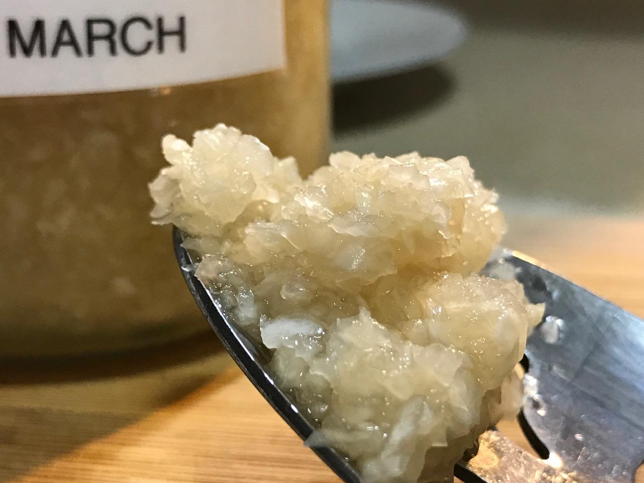 I packed up the sauerkraut on March 3rd, 2018 and stopped the fermentation by refrigerating it on the 1st of April 2018. Although I expected the flavors to stay the same after refrigeration, they did deepen somewhat in acidity since I refrigerated it. Nice though, not too acidic.