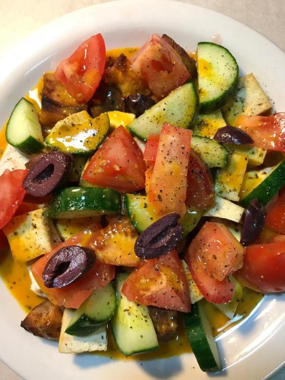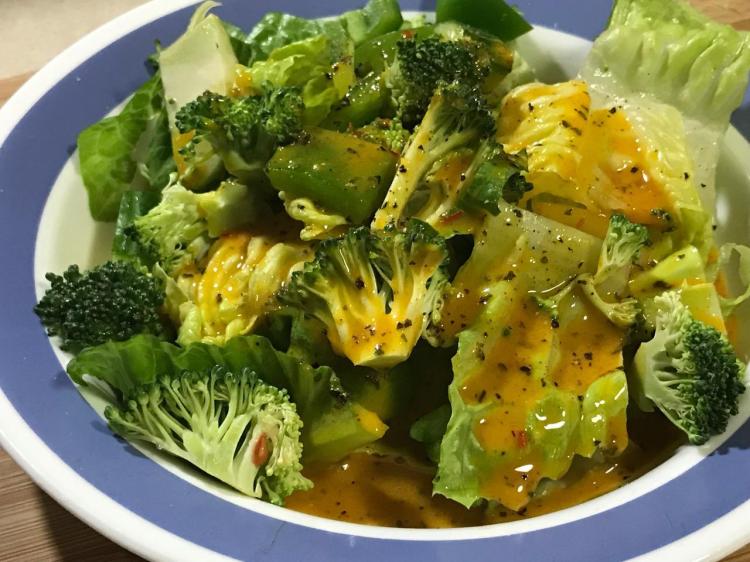 For one of the salads, I used tossed romaine lettuce with Green Tofu Chop, then this dressing for a texture achievement resembling blue cheese.