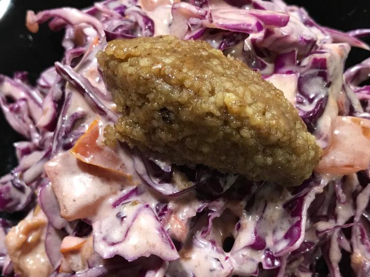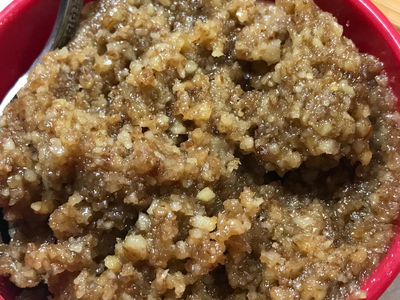 Add remaining ingredients and process till walnut crumbles begin to clump together and part of it becomes pasty, but not all of it. But don’t turn to paste. pasty with crumbles still obvious is good.