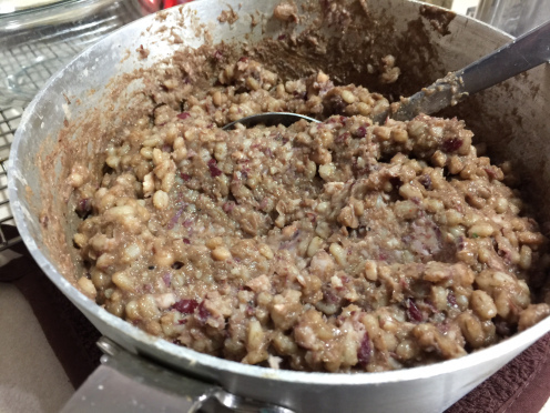 Notes: It textures a little like a Sloppy Joe without the sauce, but it still holds together. Nice effect. Especially nice since you don’t have to bake it first. Just be sure to do the overnight thing covered in the refrigerator to bind the ingredients. Then you’re good to go.