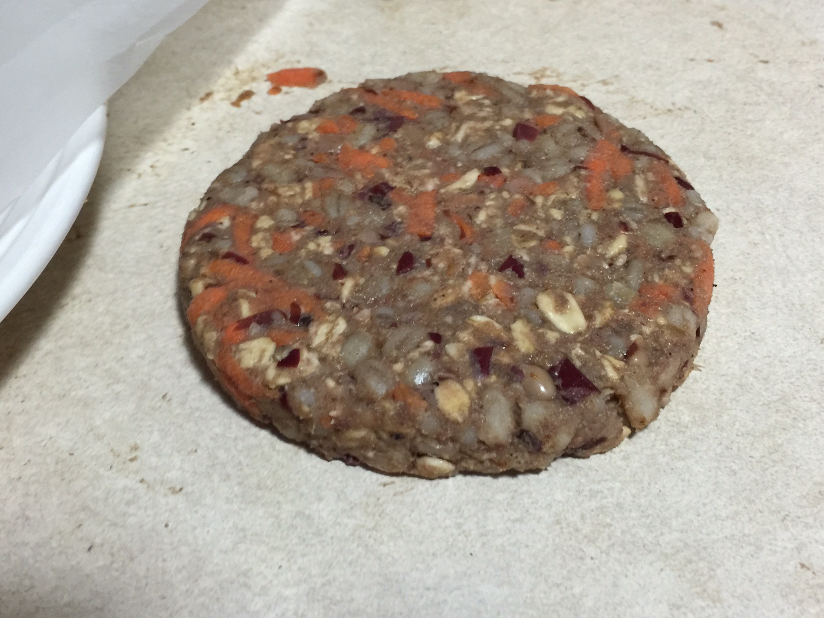 AFC EARTH BURGER The everything burger! Grains: barley and rolled oats. Veggies: mushrooms and carrots. Beans: dark red kidney beans and blackeye peas! Contains no fat, no soy, no animal products, no protein isolates! The carrots give it an earthy taste!