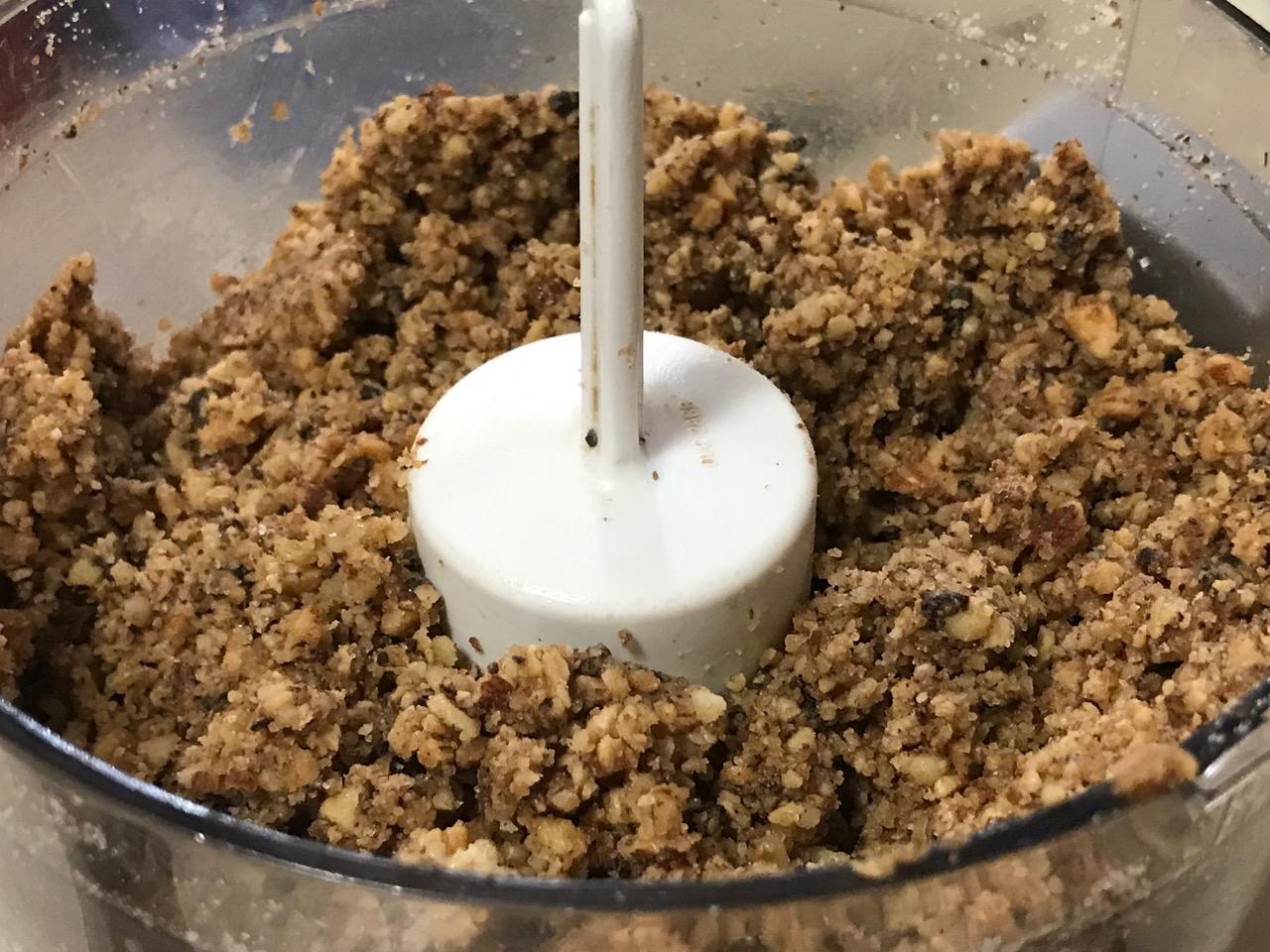 Continue to process till mixture becomes crumbly and begins to stick together, but can still be separated.