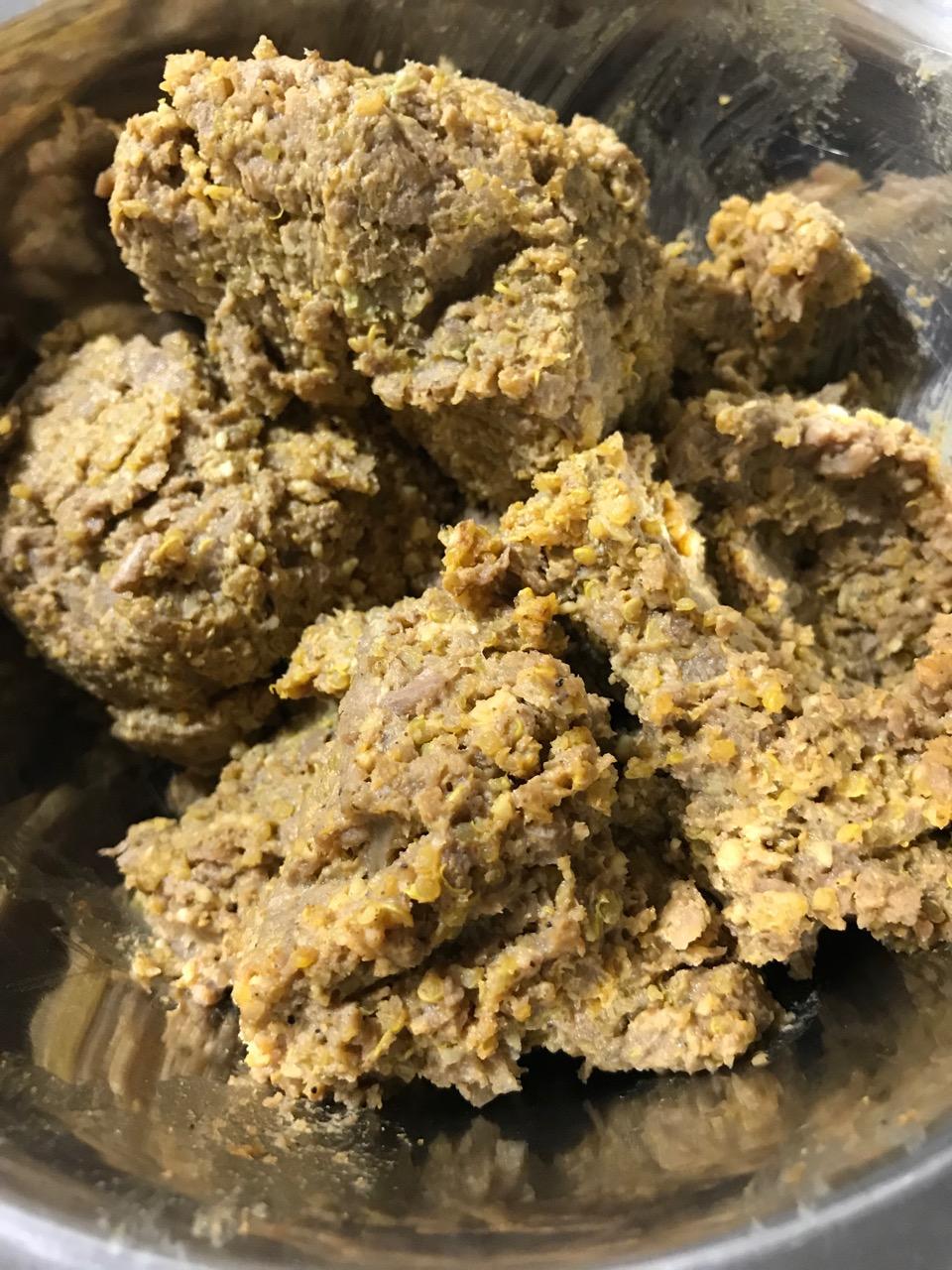 In large bowl combine quinoa, walnut crumbles and meatless sausage. Using clean hands, mix and mash till all ingredients are evenly distributed. Refrigerate to bake later or bake right away.