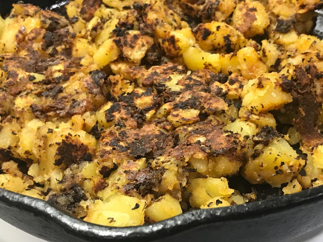 Flatten the potatoes evenly in the pan and allow to cook about 5 minutes.