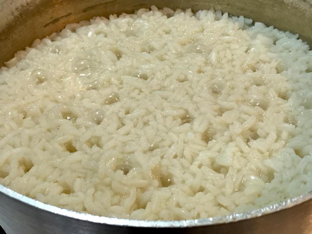 Notes: Be sure to cook on low heat so as to prevent any sticking on the bottom of the pan. We need the rice to be the same throughout with no char or hard bits from cooking on higher heat. Too low is better than too high.