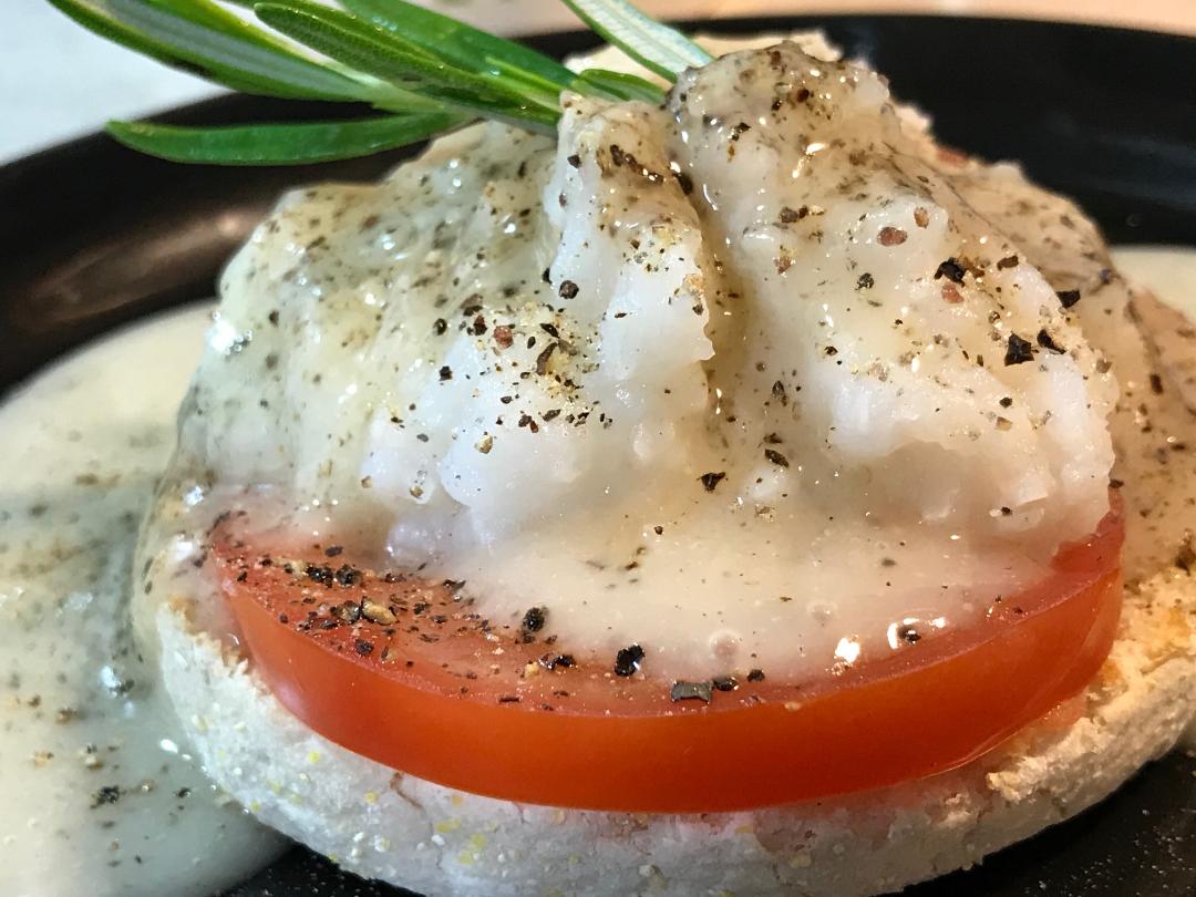 Or top the English muffin with the tomato, rice cream and a white gravy.