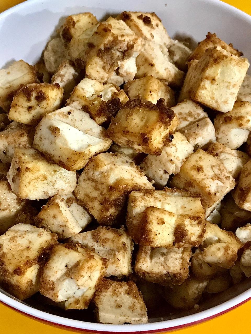2, 19 oz. pkg. soft, water-packed tofu, rinsed, carefully patted dry with towel, being careful not to break it, and cut into 1/2 inch cubes