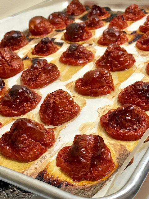 Plain roasted cocktail tomatoes. Spread on toast or use as a base for toasted pizzas! Place on sliced French baguette as appetizer or English muffin for pizzas. Or as a topper garnish for main dishes, salads and as a replacement for fresh tomatoes on a sandwich!