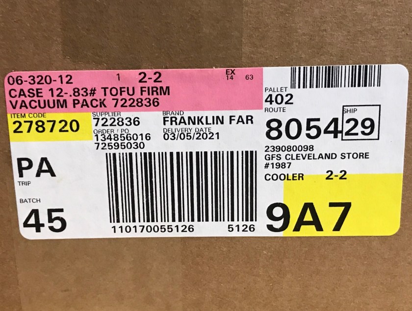 Pressed tofu isn’t your regular tofu. Many restaurants use it to deep fry for it’s firm, dense texture that resembles chicken – bars and lounges especially like it! I ordered a case and had it delivered to GORDON FOOD STORE close by. You can also buy it online – Franklin Farm makes it! I’ll be trying different ways to use it. Deep frying isn’t my thing, but I’m sure I’ll come up with equally impressive ways to use this hard tofu!