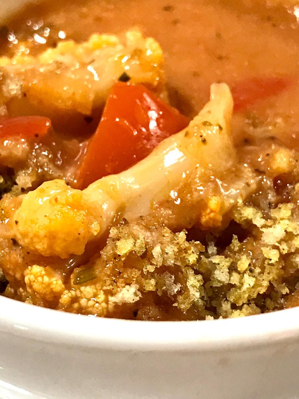 AFC CAULIFLOWER TOMATO PEPPER BISQUE Posted bysharonleedaviestight04/22/202102/12/2023Posted inAFC GOAT, AFC SOUP, AFSC PRIME RECIPES, ANIMAL-FREE DAIRY, CAULIFLOWER, TOMATOESTags:BISQUE, breadcrumbs, CAULIFLOWER, TOMATO SOUP https://animalfreesouschefprimecontent.wordpress.com/2021/04/22/cauliflower-tomato-pepper-bisque/
