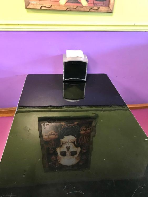 I’ve noticed that in another Mexican restaurant. ‘Stressed’ is the word a furniture-flipper once used to me when discussing a piece of furniture I had my eye on. It’s clean, but it looks old, worn and sometimes even dirty. Some people like that and even request it.