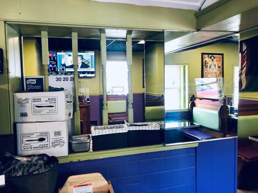 It’s a ONE WAY diner, the interior being designed for pandemic purposes. Enter one door on one end and exit the other door on the other end, unless you want to stop three quarters through and grab a booth to eat in.