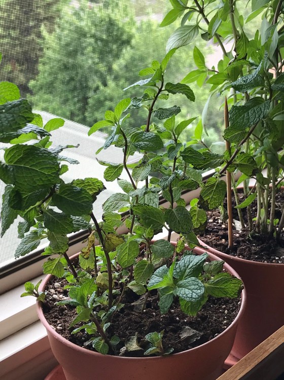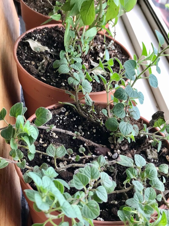I had a few pots from years past, so transplanted the 3 in1 herbs to new pots and new soil – only after waiting two days, so the plants could adjust to a new growing space.