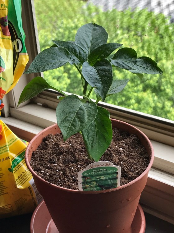A couple days later he grabs another two plants again on sale someplace else. One tomato and one green pepper. I never grew a tomato or pepper plant in a pot. This will be a first. He also bought a packet of basil seeds. Maybe I’ll spread them along the train fence. I’m out of dirt and I don’t feel like buying any more.