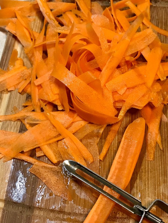 3- Add carrot ribbons and cook till tender- soft ( just a few minutes).