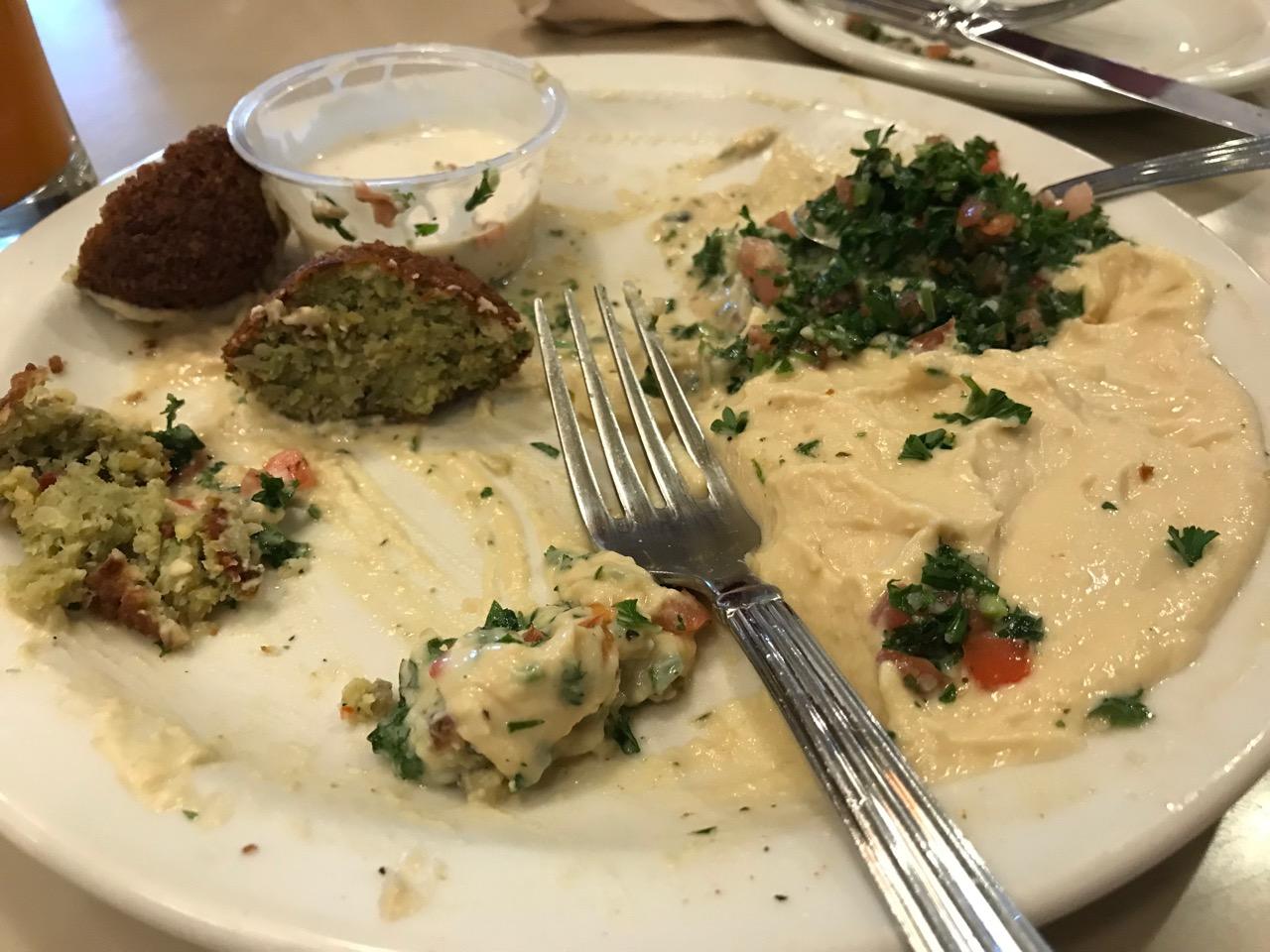 The dessert was made out-of-house. Tasty in comparison, if one can compare savory to sweet. Too dense, too sweet, you only need a few bites. If I ever went again I’d get the Baba ghanoush, bread and desert. No juice.