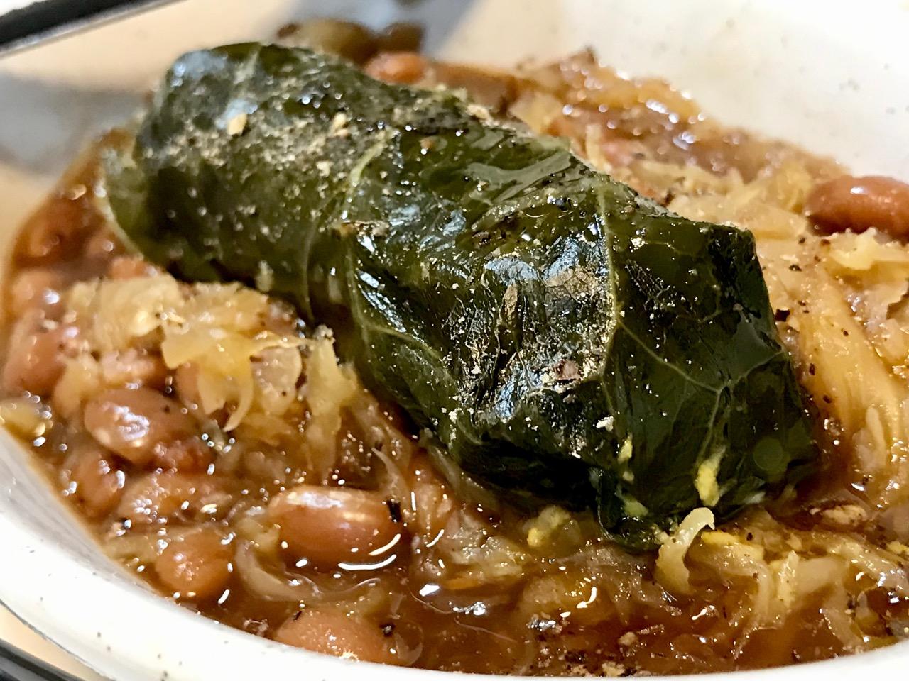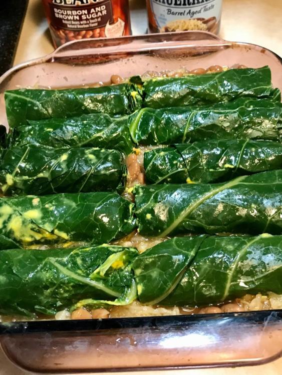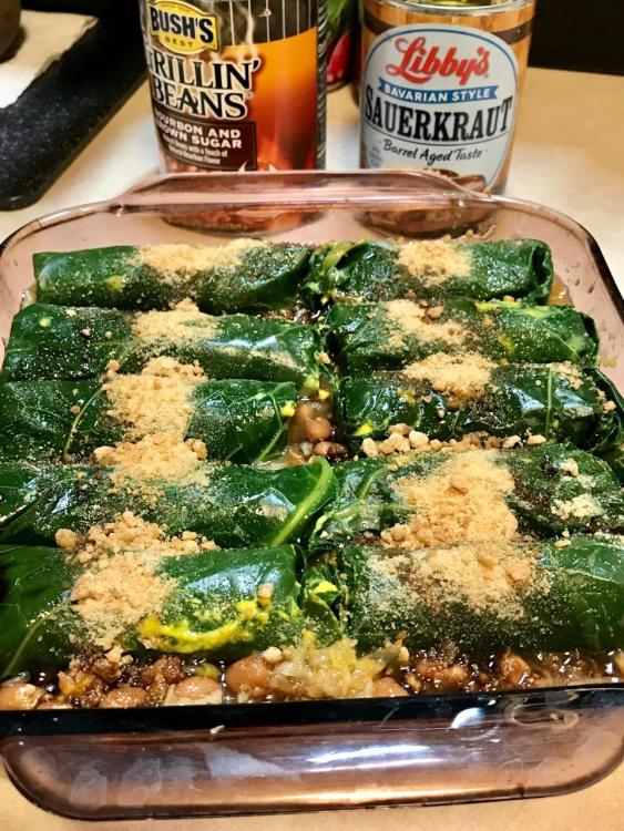 Veggie Dogs In Collard Wraps With Bourbon Beans And Bavarian Sauerkraut
