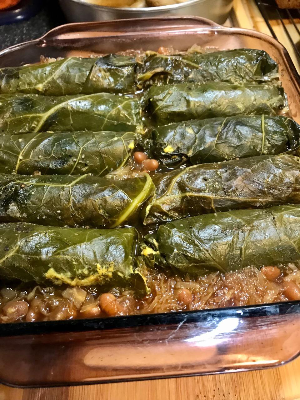 2- Bring large pot of water to boil. Submerge leaves and cook till tender, but still bright dark green and where leaves don’t fall apart when lifted gently onto plate. Taste for tenderness.