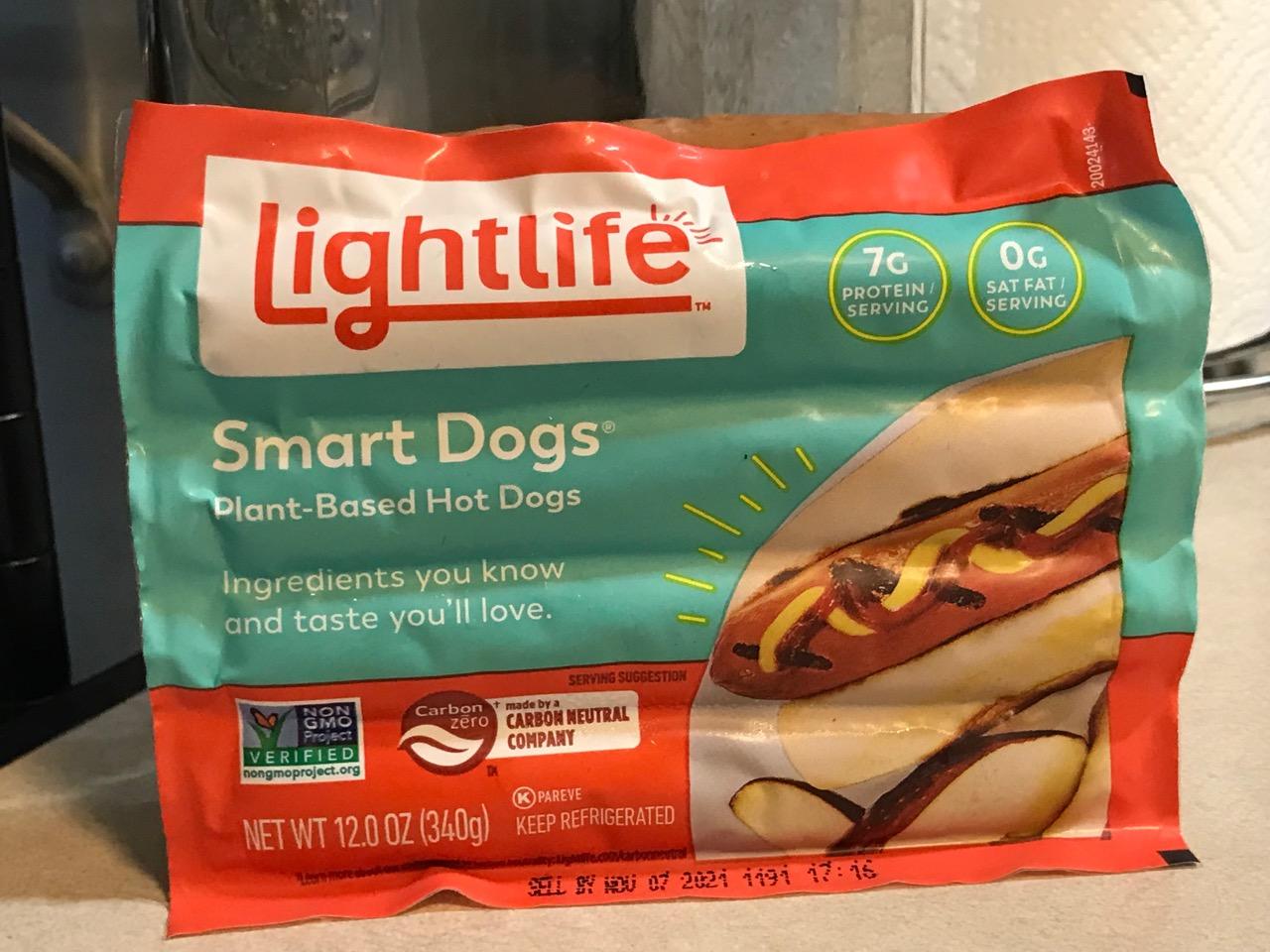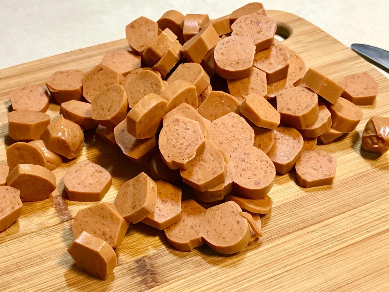 12 oz. pkg. LIGHTLIFE SMART DOGS (veggie hot dogs), thawed and cut into 1/4 inch thick disks
