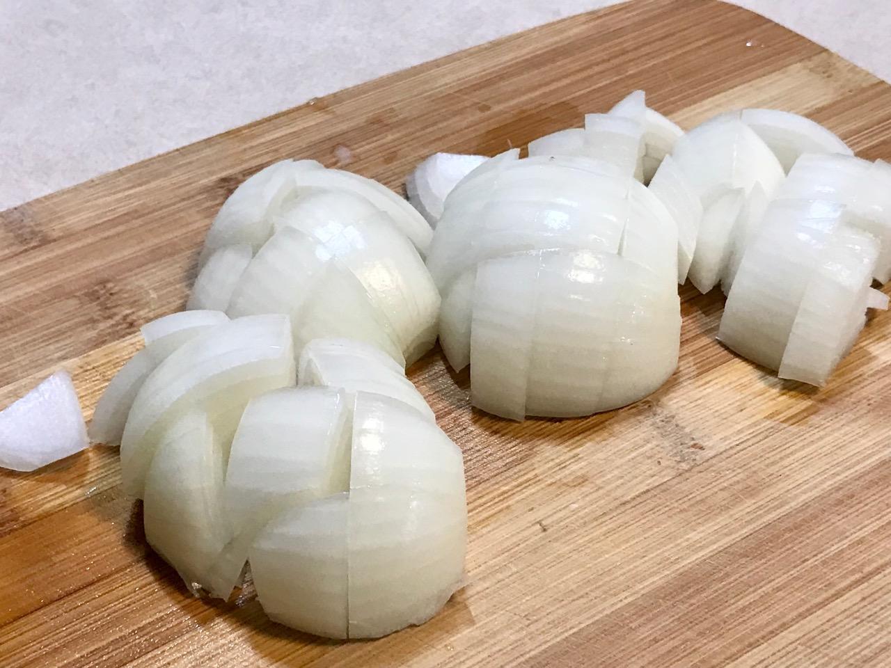 2, sm. yellow onions, peeled and cut into 1/2 inch squares