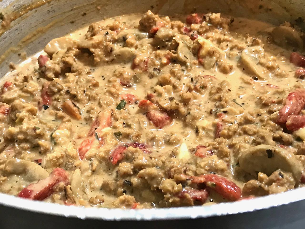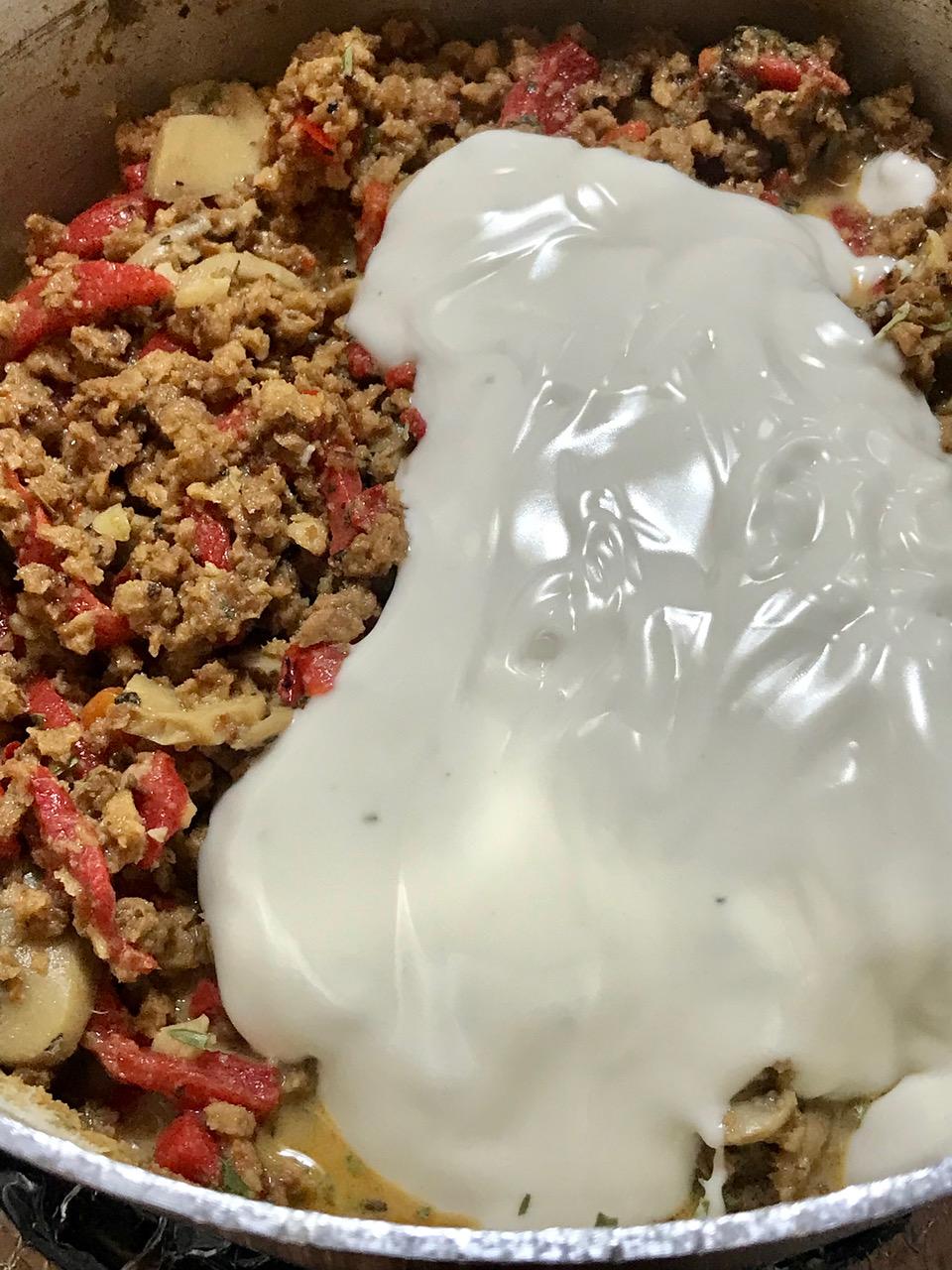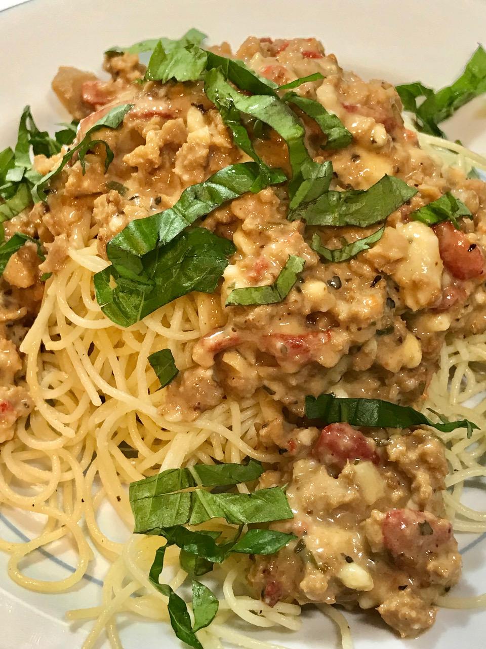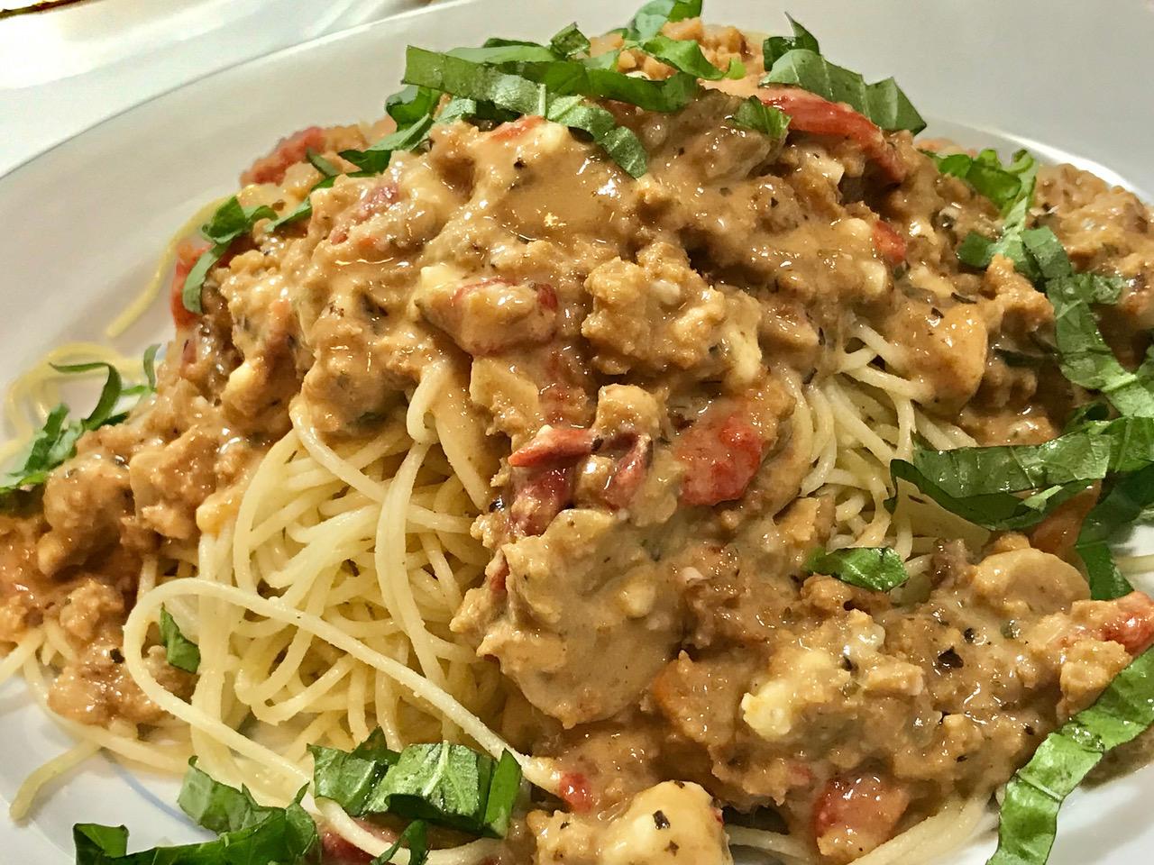 Gardein ground beef tastes better than beef. Team it up with plant blue cheese dressing plus plant blue cheese crumbles mixed with sweet red roasted peppers and you have yourself a GOAT RECIPE that’s actually simple to make! Add to that a heavy plant cream and you achieved the impossible!