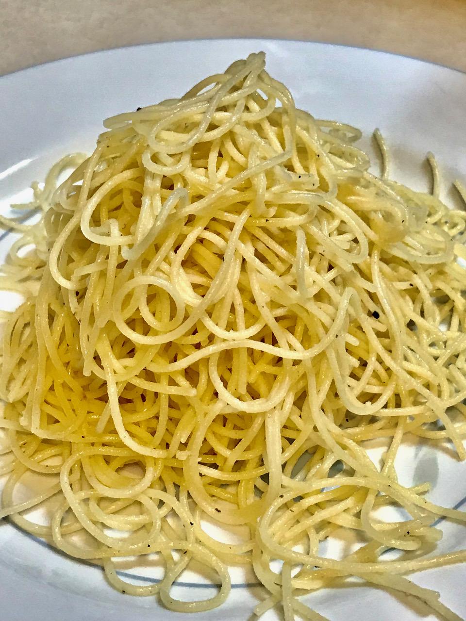 1 lb. angel hair pasta, cooked according to package instructions, drained, drizzled with oil and tossed to keep strands separate