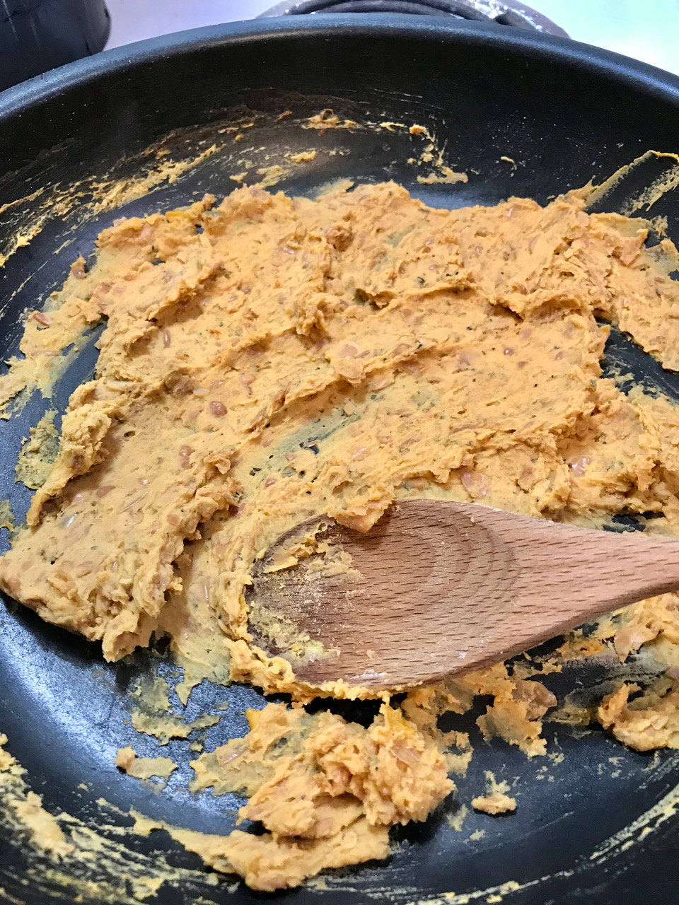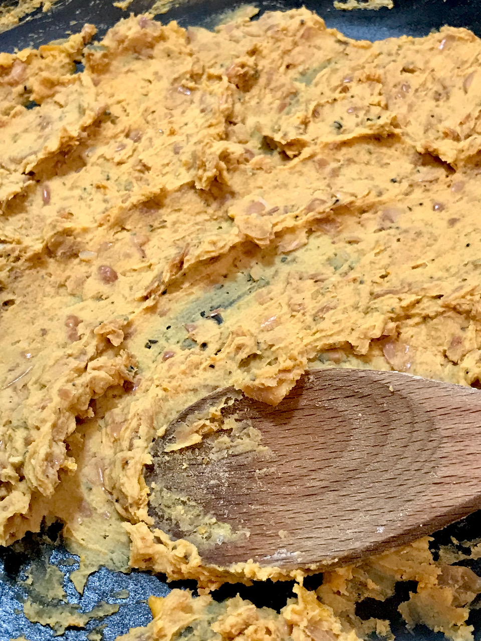 5- If after setting a while the bean paste thickens too much, just add a Tablespoon of water at a time to achieve a spreadable consistency – not too thin.