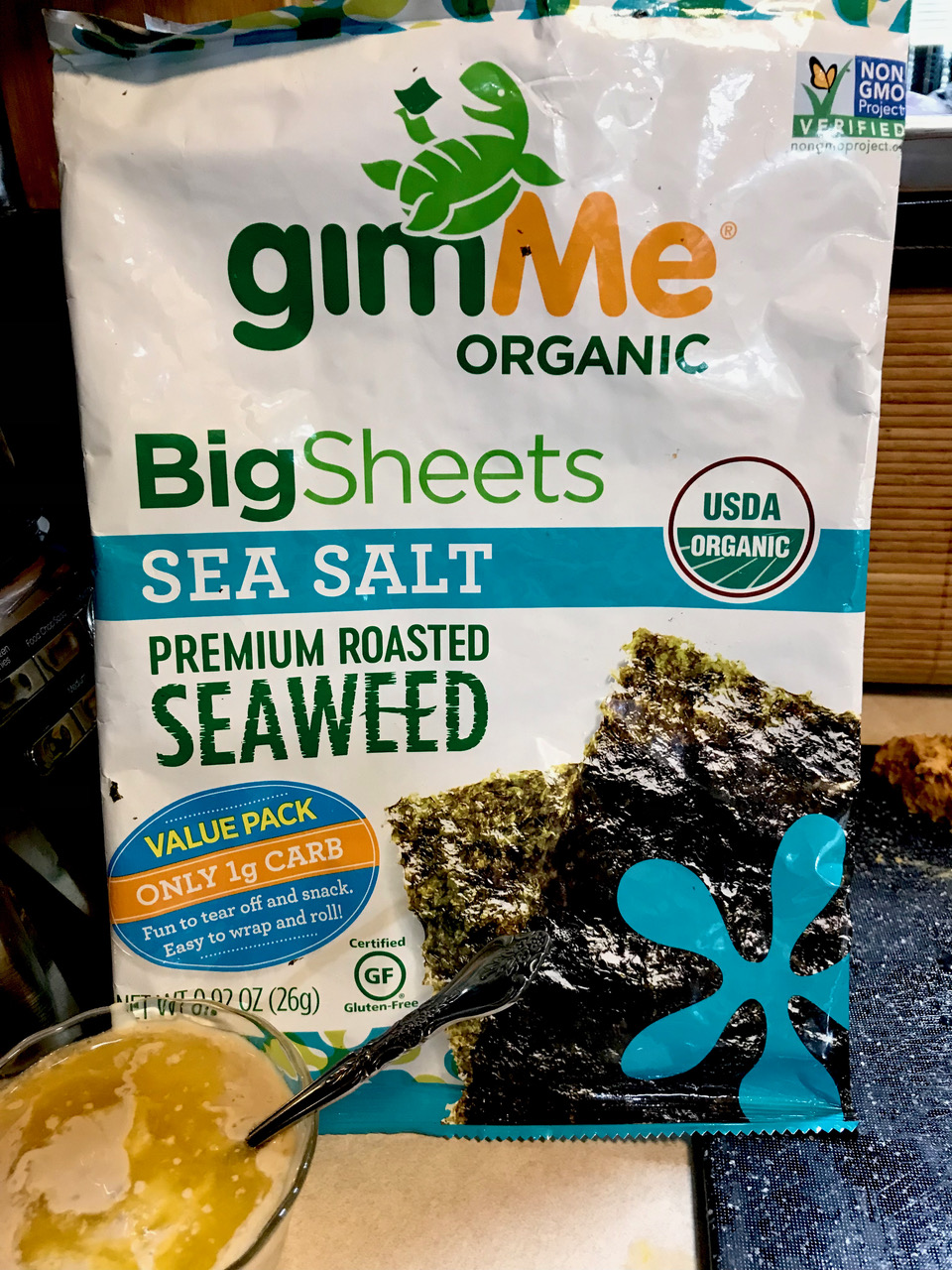 Pickled carrot and ginger stuffed pan-fried veggie dogs. Laid on a bed of Barbecue Bean Paste on a sheet of roasted seaweed. Rolled and cut into disks. Served with a CREAMY ITALIAN ORANGE SAUCE!