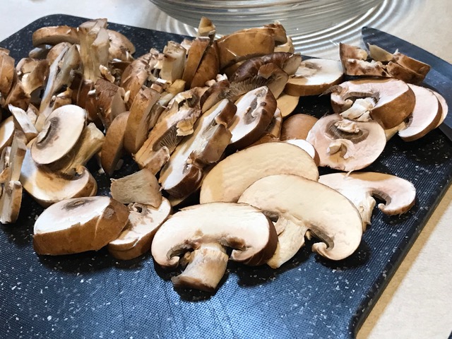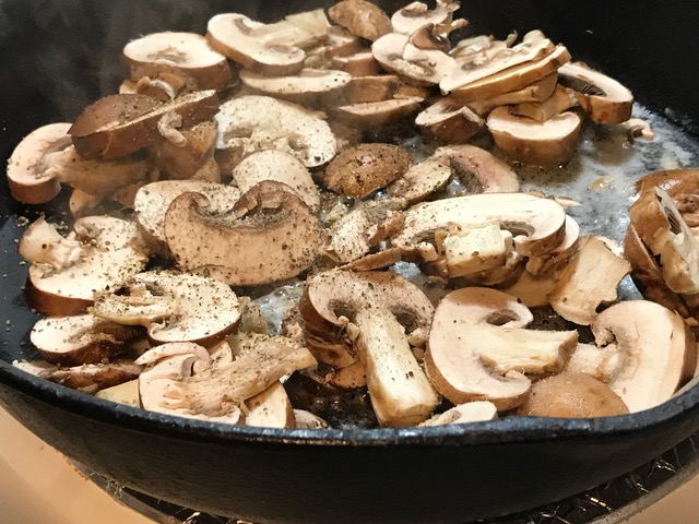 1- In extra-large skillet, over medium heat, melt margarine. Add mushrooms and salt, then saute till edges round out and mushrooms glisten.