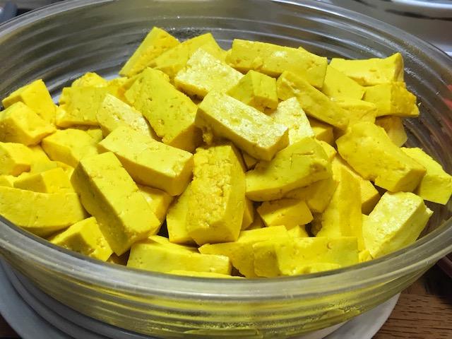 Notes: If the bags the tofu is packed in are loose, then the tofu has been frozen, which defeats the purpose of vacuum packed, rendering the tofu soft instead of hard, when the tofu thaws. That’s a problem in the tofu industry – transporting and storing it correctly.