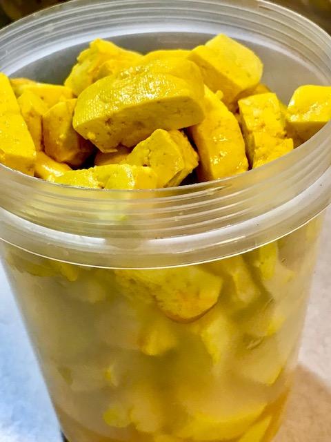 You know the spice blend that restaurants use to cook shell fish primarily? Well, why not do the same with tofu? Opening the bag and pouring some of it into the water nearly choked me. Big reaction. Guess I breathed some of it in. Use CAUTION when using Crab Boil Spice. Otherwise it flavors great.
