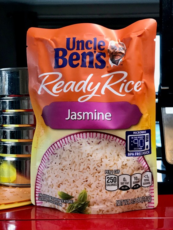 Notes: If you want to use regular long grain rice, go ahead. I used these microwaveable bags, since I had them on hand and Steve likes them.