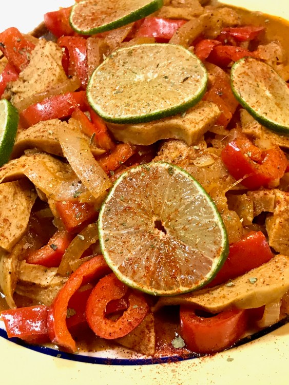 1 pkg. 9.85 oz. VEGAN IMITATION SMOKED DUCK, by May Wah aka Lily’s Vegan Kitchen, thawed – cut vegan duck in strips – cut it across the center from end to end, then crosswise into 1/2 inch widths