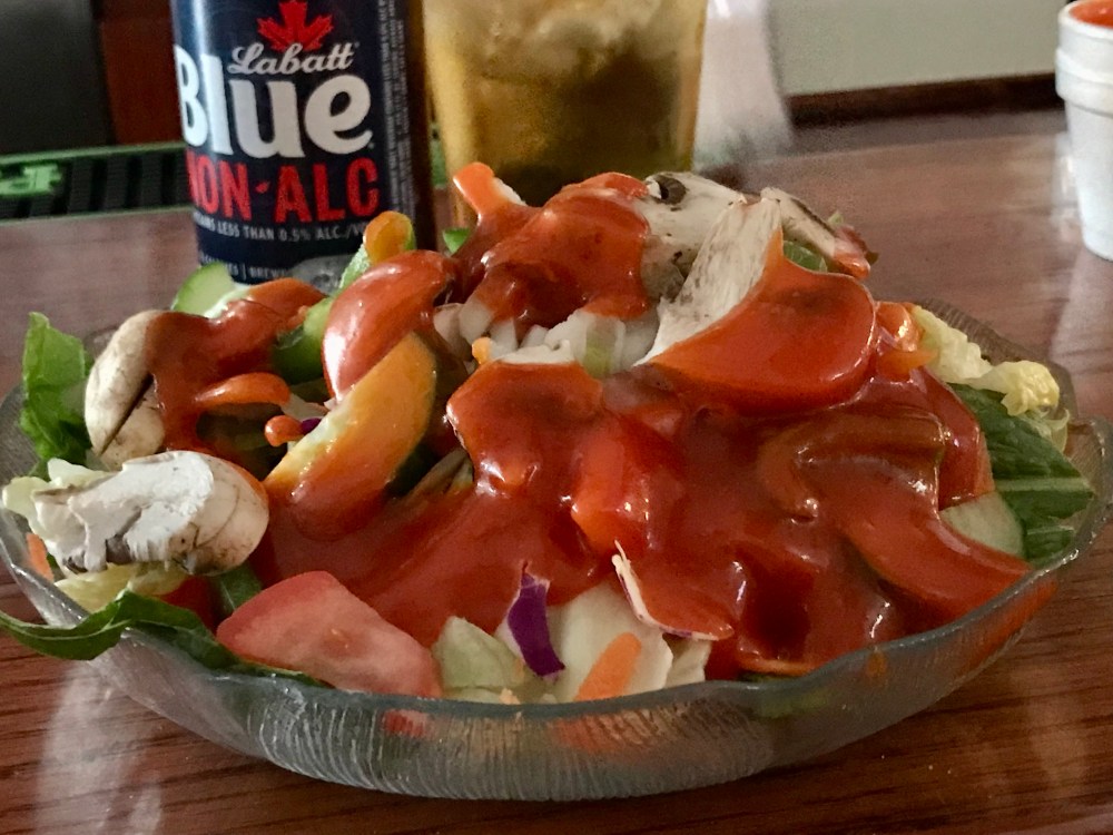 They can also make a side salad with red dressing that’s animal-free if you request it.