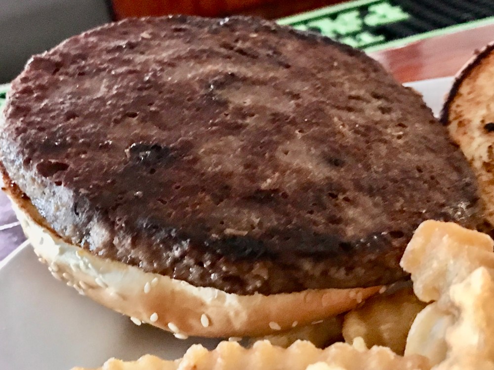 Then they got it in again. This time I was there. Actually, this Impossible burger tastes and textures more like the Burger King Burger.
