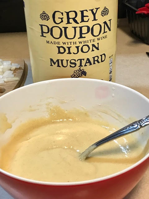 Grey Poupon Dijon Mustard plain or mixed with a little veg mayo – as much as you want