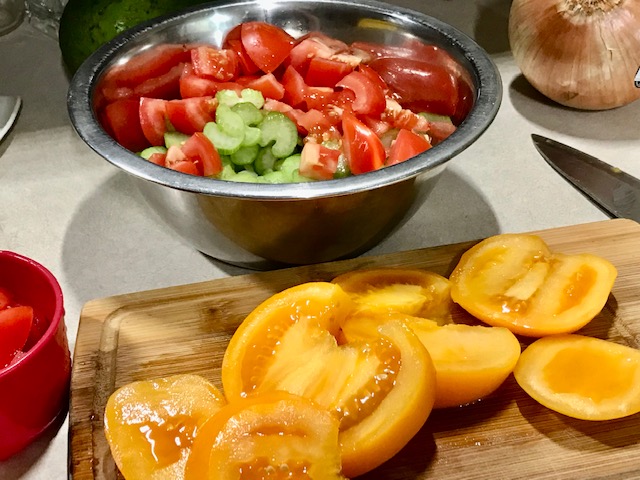 1-3/4 c. fresh tomato 3/8 inch dice – use whatever tomato you want, just be sure they’re ripe; I used roma and orange