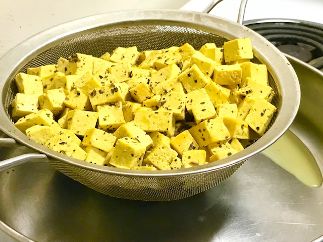 2, 14 oz. blocks vacuum-packed hard tofu, firm, rinsed well and cut into 3/8 inch cubes