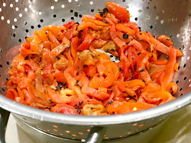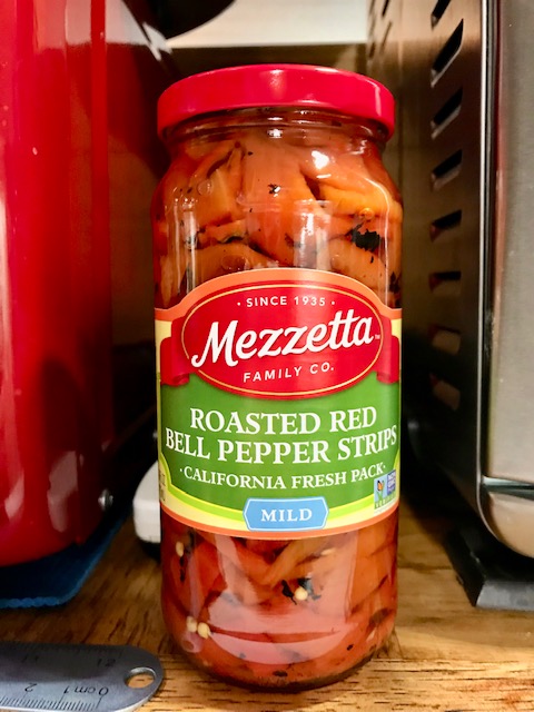 16 oz. jar red roasted pepper strips, drained well and squeezed a bit to extract excess water; don’t make mush of it though