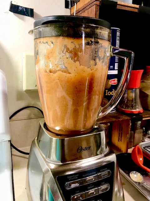 2- Add guar gum powder in the center and immediately pulse while watching to see it dunk down into contents. Blend on high speed till frothy again.